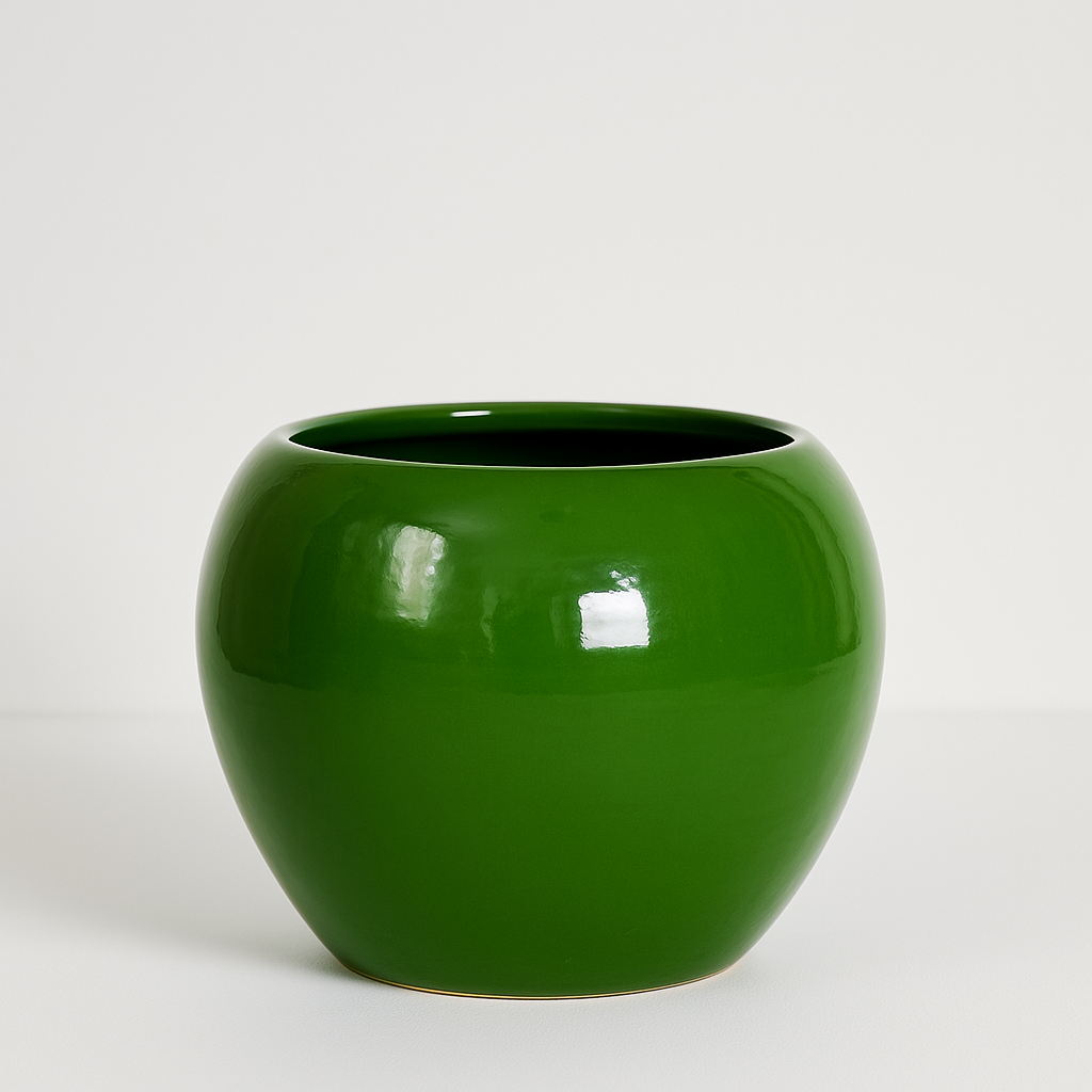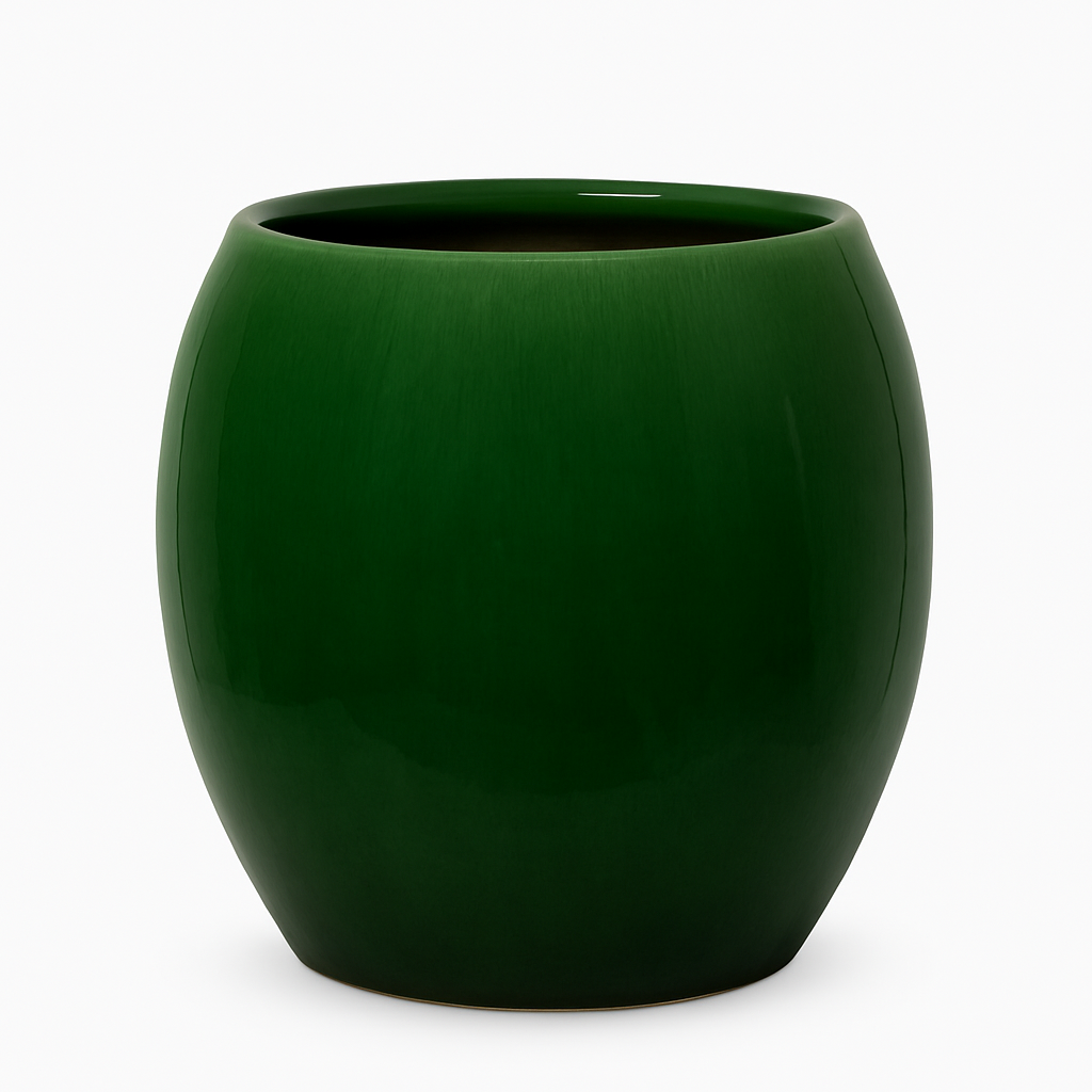 Élégant pot en céramique vernissée, aux tons verts profonds et raffinés. Sa brillance subtile et sa forme arrondie apportent une touche de modernité et de sophistication à votre intérieur. Idéal pour sublimer vos plantes tout en ajoutant une note décorative chic à votre espace.
