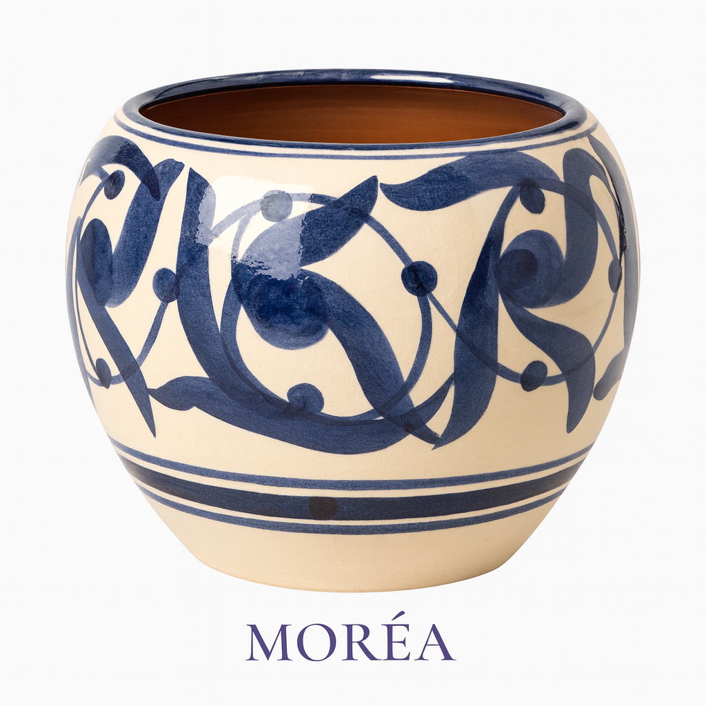 Ce pot en céramique artisanal séduit par son design raffiné et intemporel. Les motifs bleu profond peints à la main se déploient avec fluidité sur un fond ivoire, créant un contraste élégant et harmonieux. Chaque détail reflète le savoir-faire traditionnel, offrant une pièce unique qui sublime vos plantes tout en apportant une touche artistique et sophistiquée à votre intérieur.