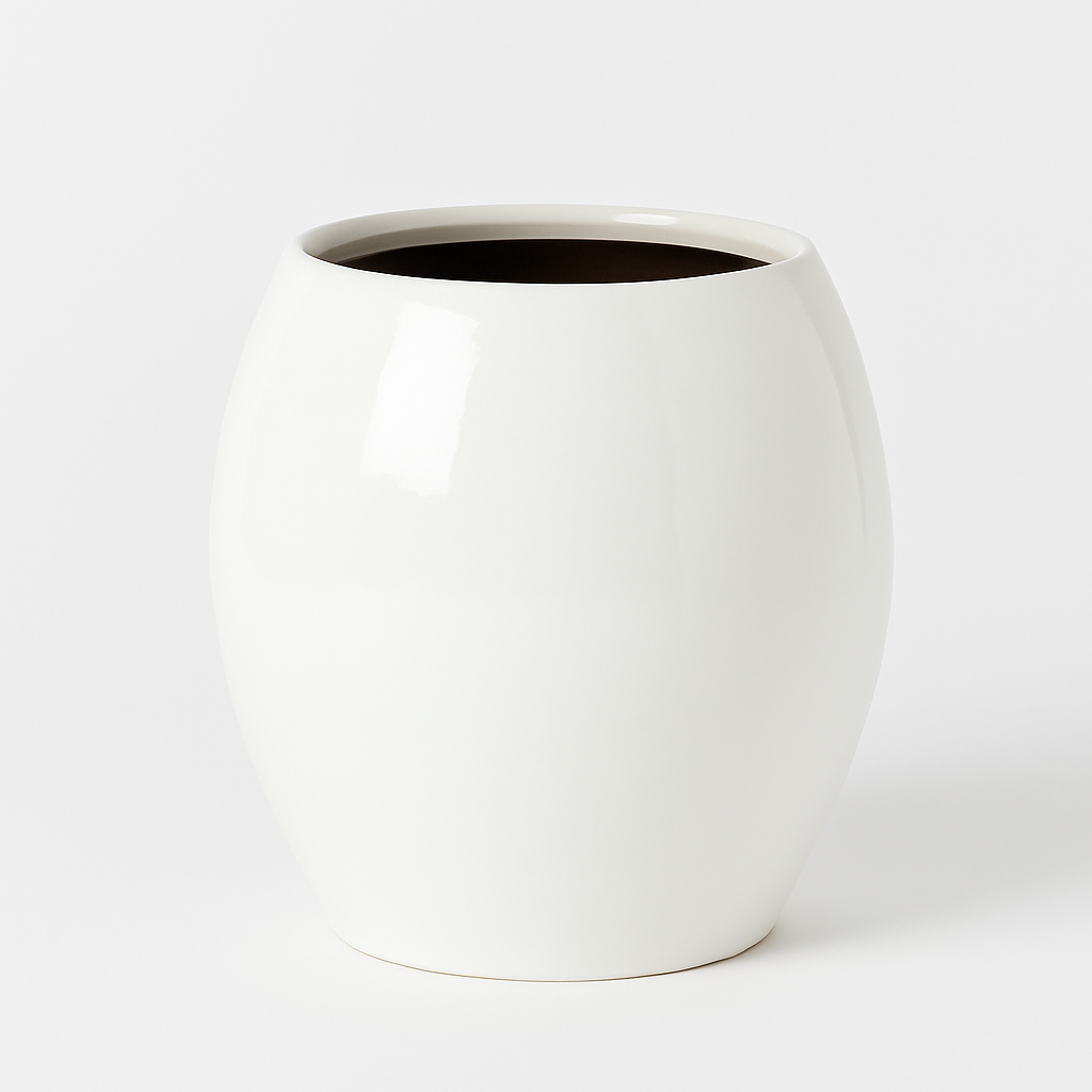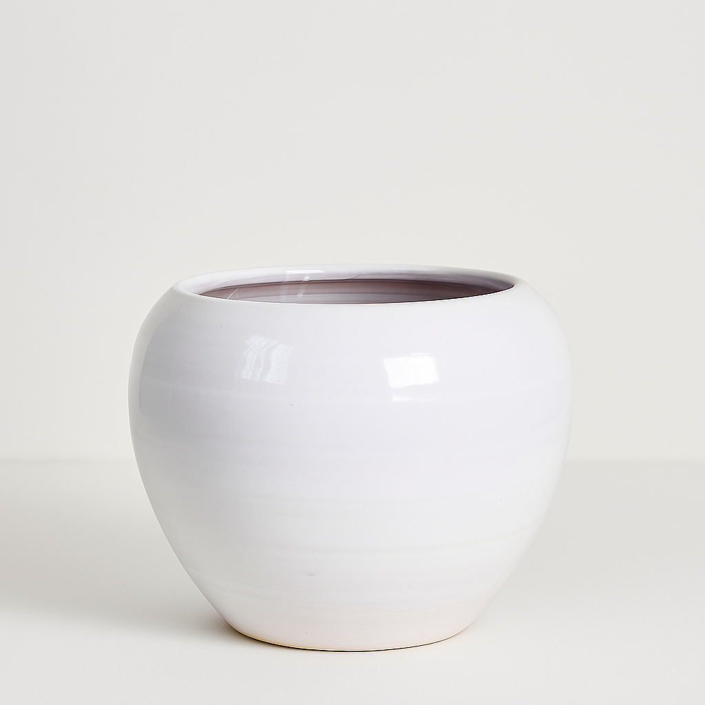Pot en céramique blanche au fini brillant et raffiné. Son design épuré et sa teinte lumineuse apportent une touche de pureté et d’élégance à votre intérieur, mettant en valeur vos plantes avec un style moderne et intemporel.
