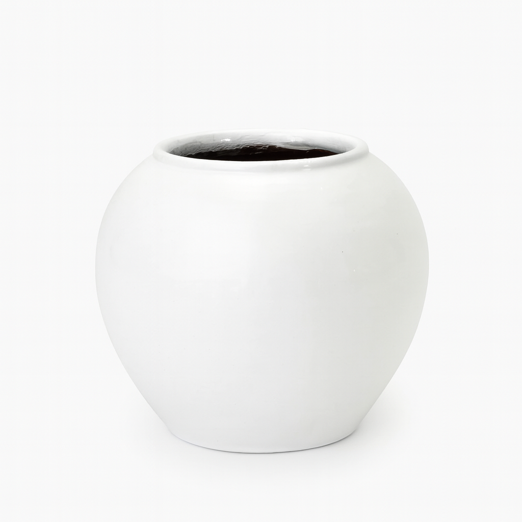 Pot en céramique blanche au design arrondi et raffiné, avec une finition lisse et brillante. Sa teinte éclatante et minimaliste s’adapte à tous les styles d’intérieur, apportant une touche de pureté et d’élégance pour mettre en valeur vos plantes avec sobriété.
