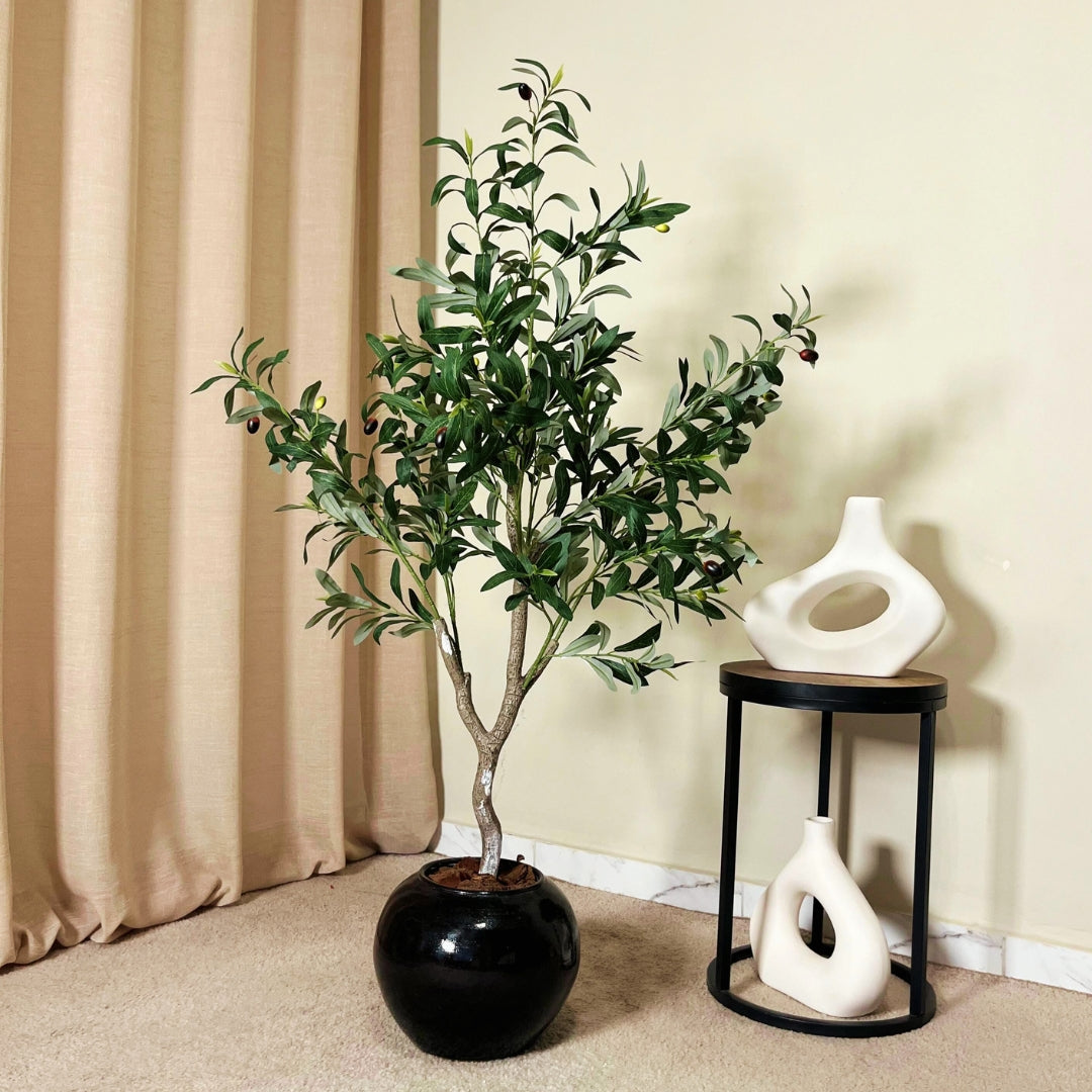 Chaque feuille est finement texturée et nuancée pour imiter parfaitement l’olivier naturel — avec des olives noires délicatement placées, donnant une illusion bluffante de réalité.